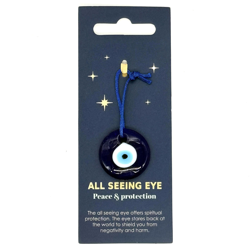 - Design: Features the traditional evil eye in bright blue, light blue, white, and black.