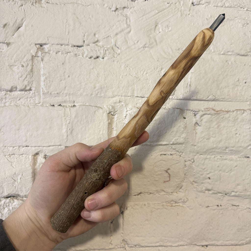 11-Inch Chestnut Wood Wand with Hematite Crystal Point