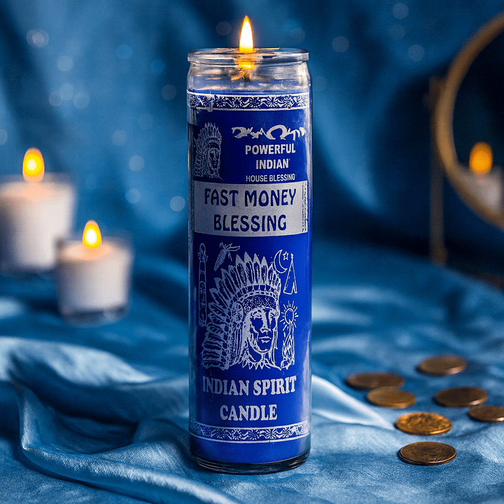 Fast Money Blessing Blue 7 Day Candle in Glass Jar